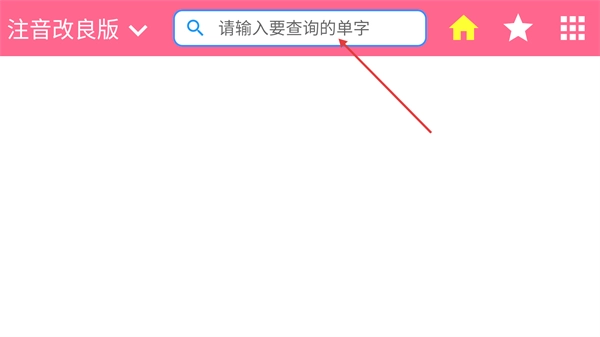 2、进入应用后,确认顶部【注音改良版】选项,点击【请输入要查询的单字】搜索框,准备输入需查询的内容。