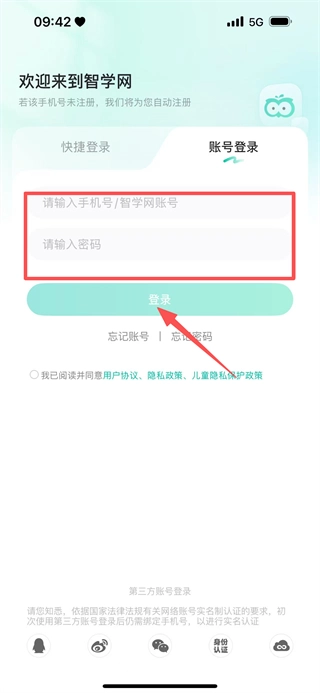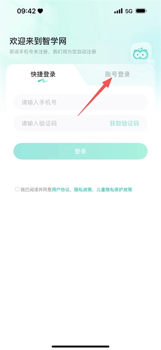 2、在智学网登录页面,点击账号登录选项,切换至账号登录界面。