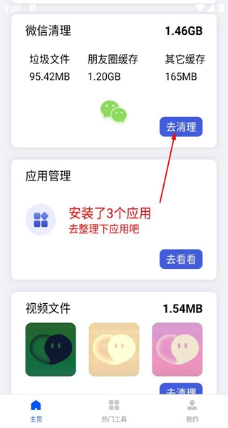 1、启动软件并进入主界面,找到微信清理相关板块,点击对应的“去清理”按钮,即可进入清理流程。