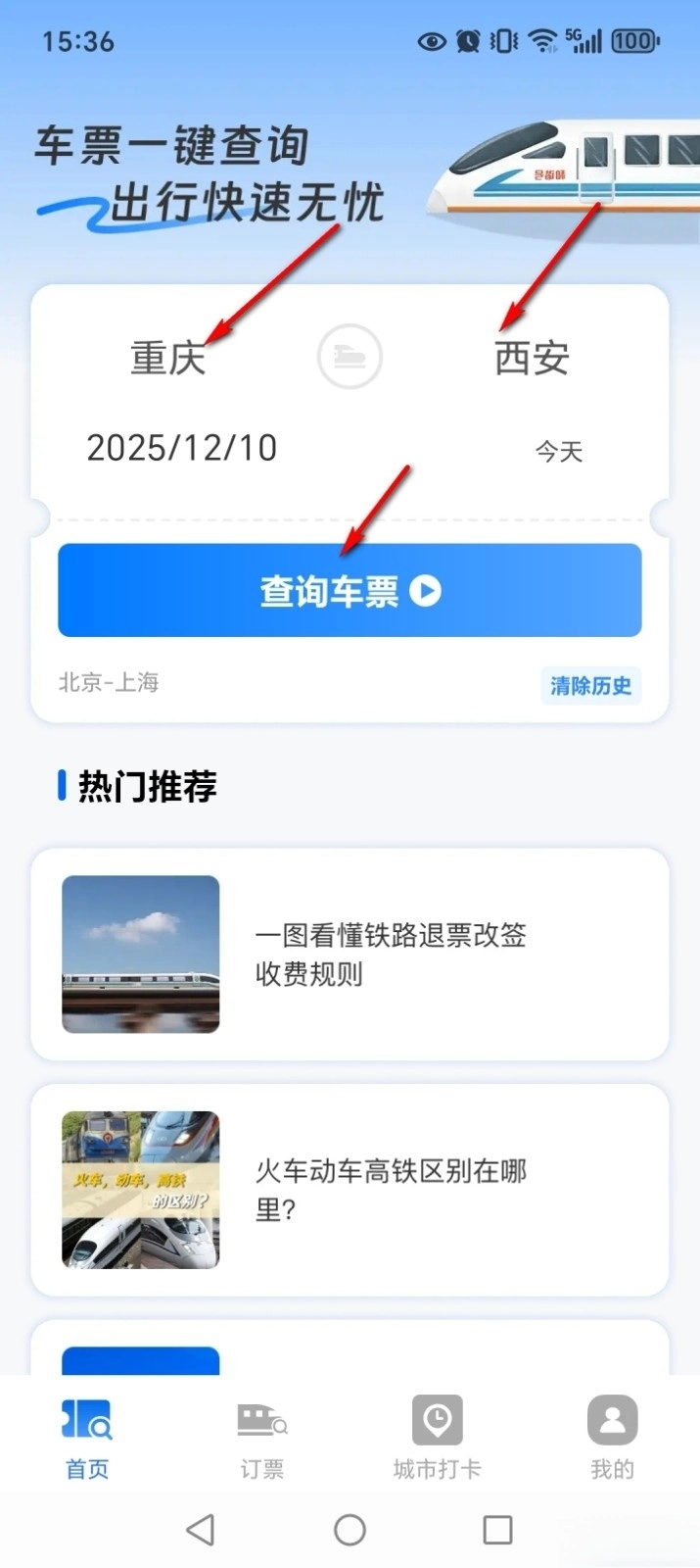 数据直连秒查余票,城市打卡记录行程,点亮城市地标,让每一次出行都成为值得珍藏的旅程!