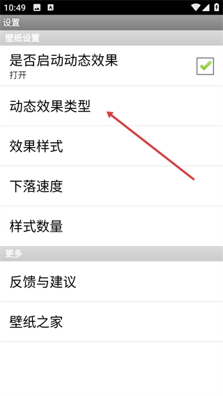 2、进入壁纸设置页面后,找到【动态效果类型】选项,点击可展开效果样式选择菜单。