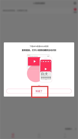 2、查看【MP4或者M3U8视频】的引导弹窗后,点击【知道了】关闭提示,继续操作流程。