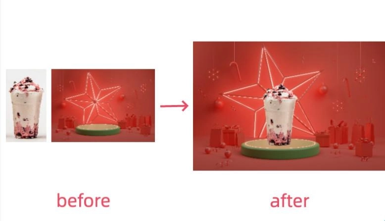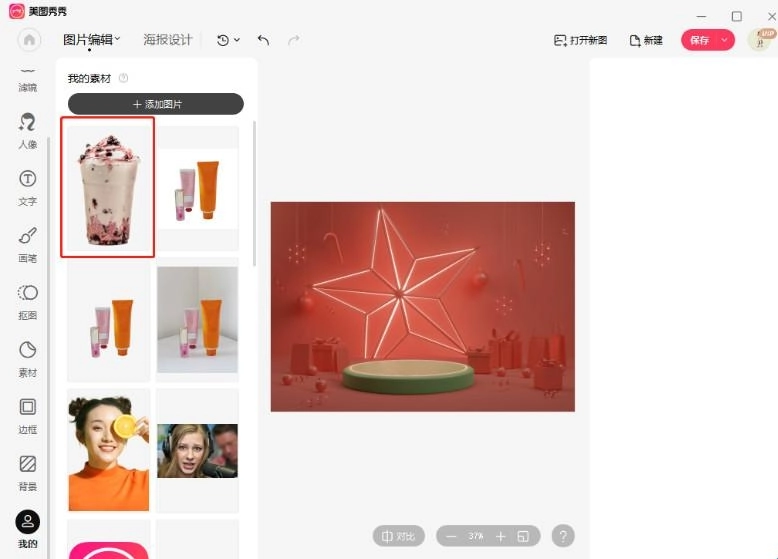 当然,按照同样的方法,你还可以继续通过“我的”-“添加素材”这个路径,添加其他图片,将其抠图后放置在这张背景图上。