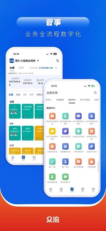 2、灵活的解决方案: 众流生意提供多个行业版本,适配不同行业的具体需求,搭配不同业态所需的硬件,形成精细化的解决方案,真正实现软硬件结合,推动实体商业的数字化发展。