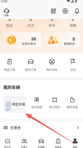 3、完成此项步骤并设置登录密码,点击用户界面的绑定车辆开始连接。