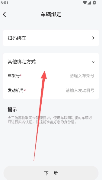 5、或是以其他绑定方式,输入车架号、发动机号的方式完成连接。
