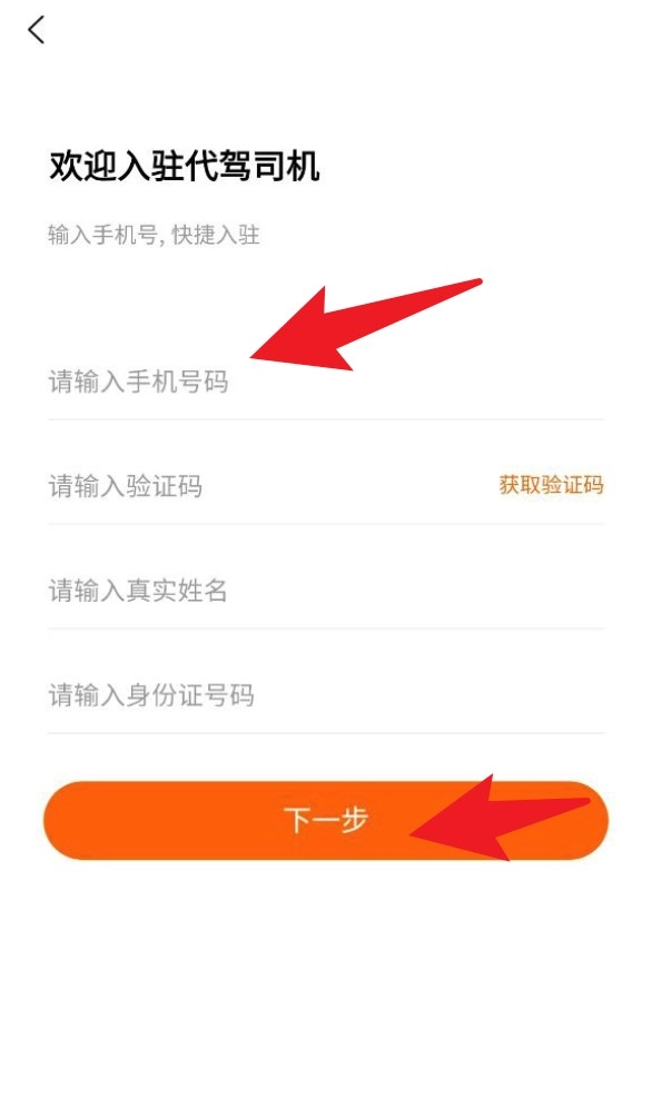 1. 打开应用程序进入注册界面,依据提示依次填写手机号码、验证码、姓名及身份证信息,随后点击下一步按钮。