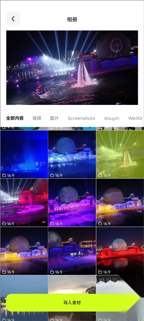 3、添加图片或者视频,并导入素材;