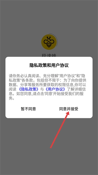 1、需阅读【用户协议】与【隐私政策】,点击【同意并接受】按钮,方可继续使用应用提供的服务。