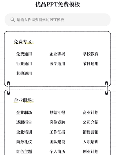 1. 打开优品ppt App后,在首页里依据自身需求找到相应的分类。