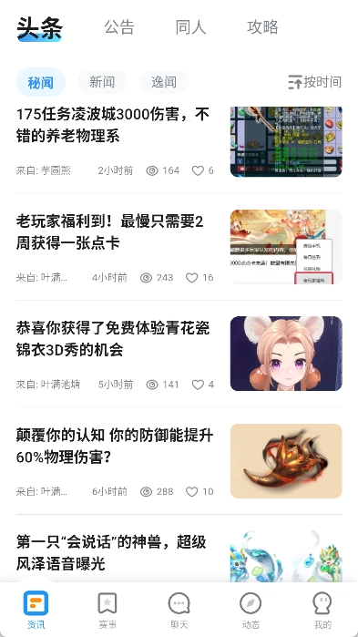 - 在动态栏目中,我们为玩家打包了一系列热点资讯。您可以发布生活状态与好友分享点滴,或查看梦幻精灵带来的最新游戏八卦。