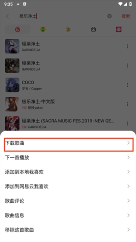 4、点击右上角搜索,输入歌曲名称搜索,多个搜索源可选;