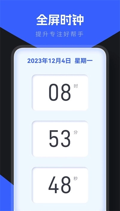 3、全屏时钟:提供沉浸式体验,有助于用户专注学习与工作。
