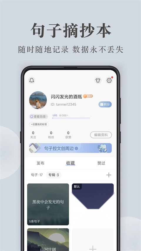 本应用致力于解决句子收集与分享的难题,帮助你高效整理并分享你的句子收藏,与其他用户一起沉淀智慧的精华。