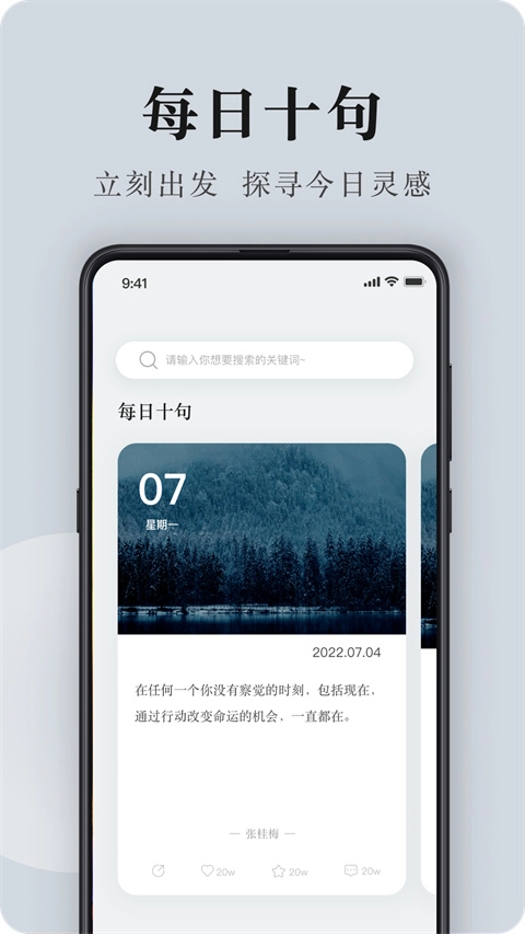 句子每日更新、图片无痕,多样模板与字体,一键分享所见所感,让您迅速找到所需的素材,分享个人感悟;