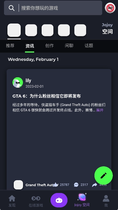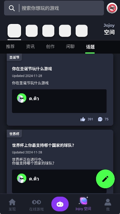 Jojoy是一款内容十分丰富的游戏盒子软件,它能为我们提供海量的游戏资源,甚至连游戏攻略和MOD资源也包含在内!而且游戏类型也极为丰富,从热门新游到经典旧作一应俱全,几乎没有我们找不到的游戏。我们还能在第一时间知晓各个游戏的最新动态和技巧,抢占先机提升自身实力!作为一款享誉全球的游戏库软件,社区功能自然不可或缺,我们可以和其他玩家互动交流,进而发现更多优质游戏!