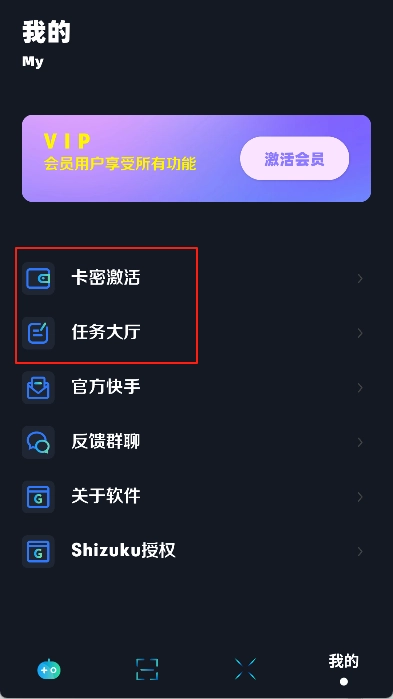 2. 进入用户中心点击【卡密激活】或【任务大厅】完成激活。