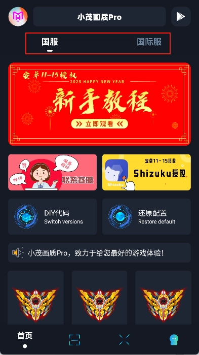 3. 在首页中点击上方的版本可以进行切换,选择所需的画质模式。