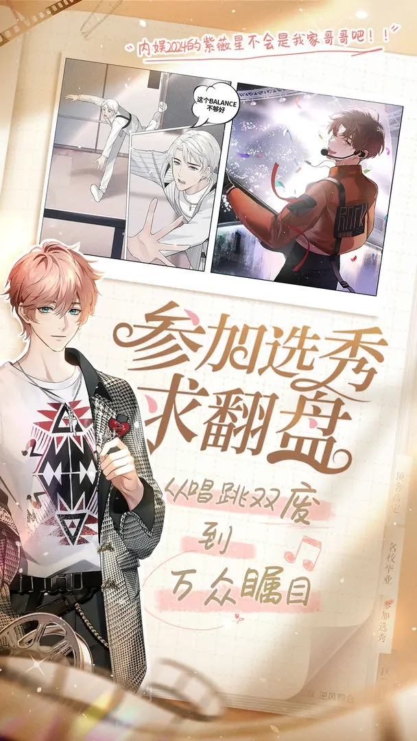 娱乐圈题材:游戏以娱乐圈为背景,玩家将扮演一名被AI艺能评分系统否定的娱乐圈十八线小透明,通过努力练习进阶提升,最终成功出道,逆风翻盘成为顶流巨星。