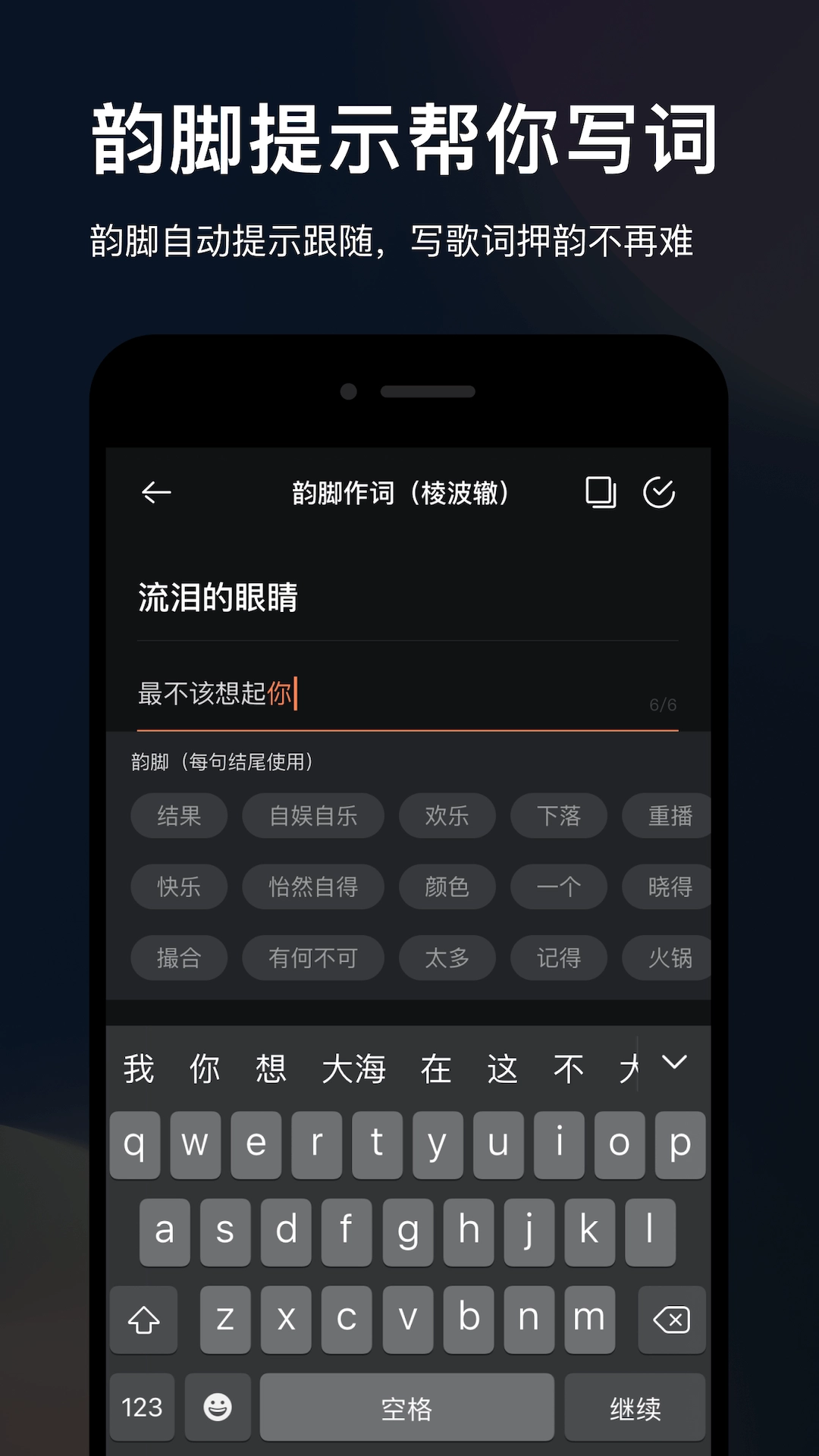 2.创作一段歌词以明确整首歌的主题,也可以选用他人的歌词。
