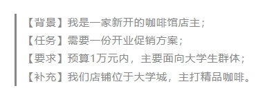- 例如:提供行业背景,提出具体任务,明确信息要求,补充额外需求。