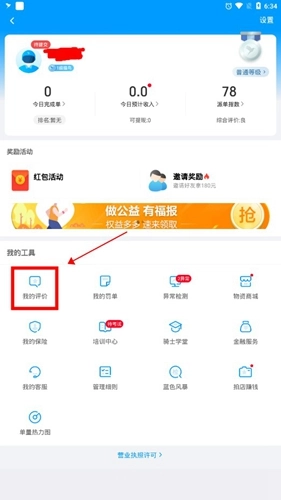 2、这里就是我们的个人信息界面了,大家想看的用户评价就在箭头指的方向了。