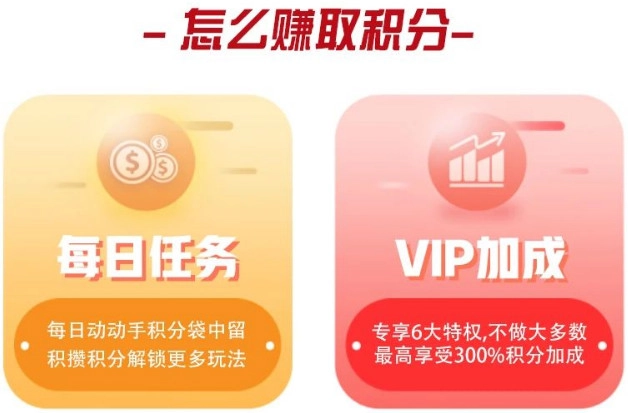 早游戏怎么赚取积分攻略1:每日打开早游戏完成签到、登录、分享、夺宝、充值等任务都可领取大量积分。攻略2:开通vip会员,解锁6大特权最高可享300%积分加成。首开会员更有6折优惠。