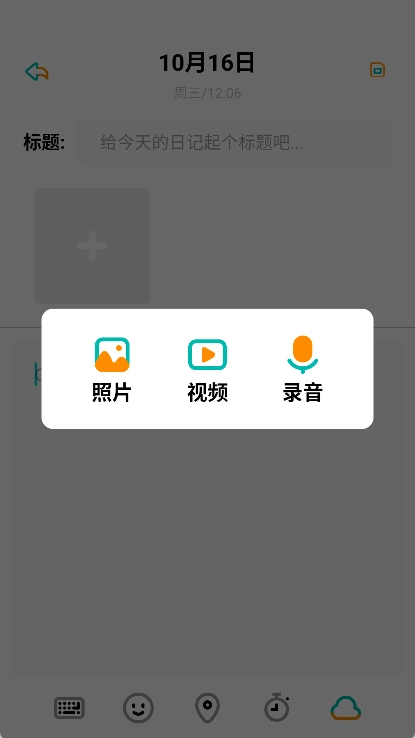2、在笔记编辑页面可以输入文字、添加图片、视频或录音,来丰富笔记内容。