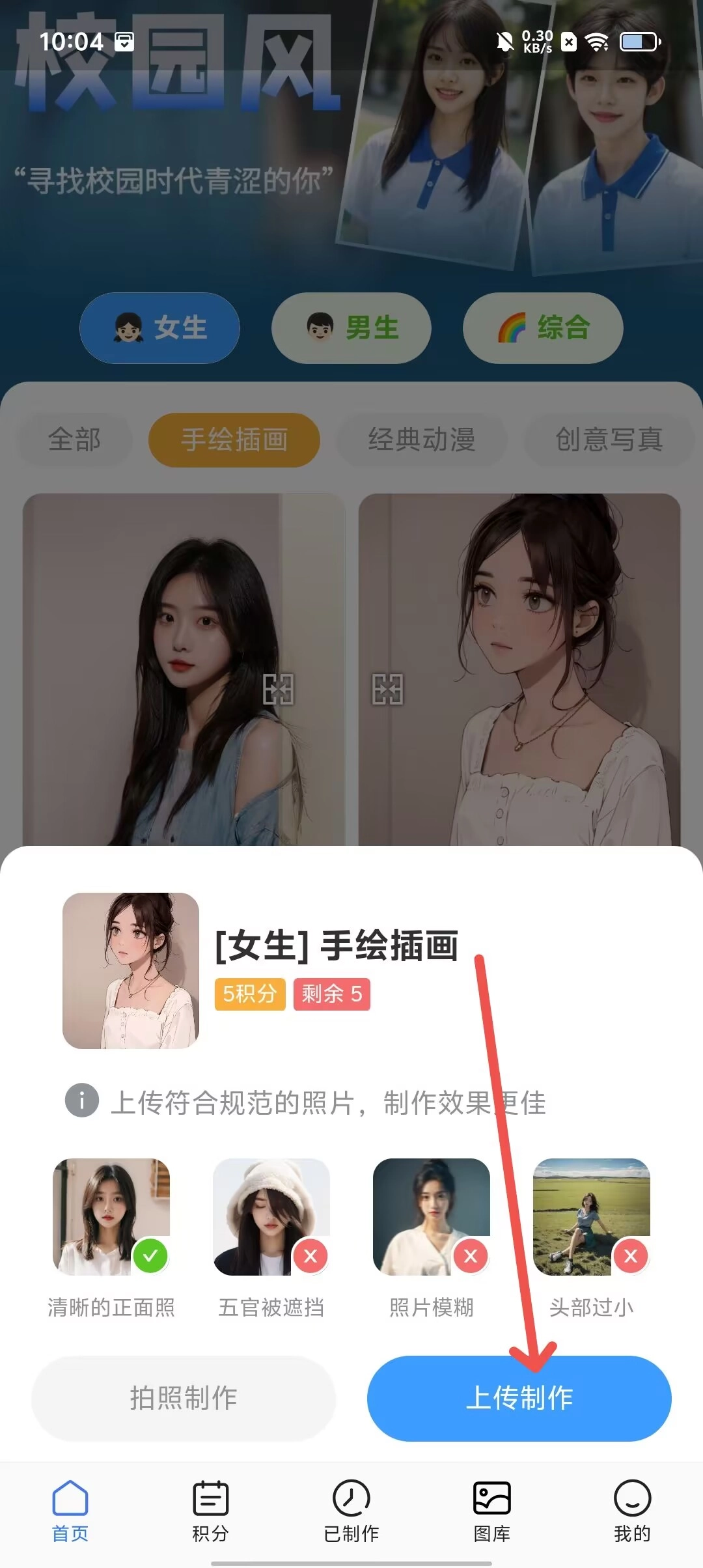 2、上传你自己的照片是一个简单方便的工具,对生成动漫照片至关重要;