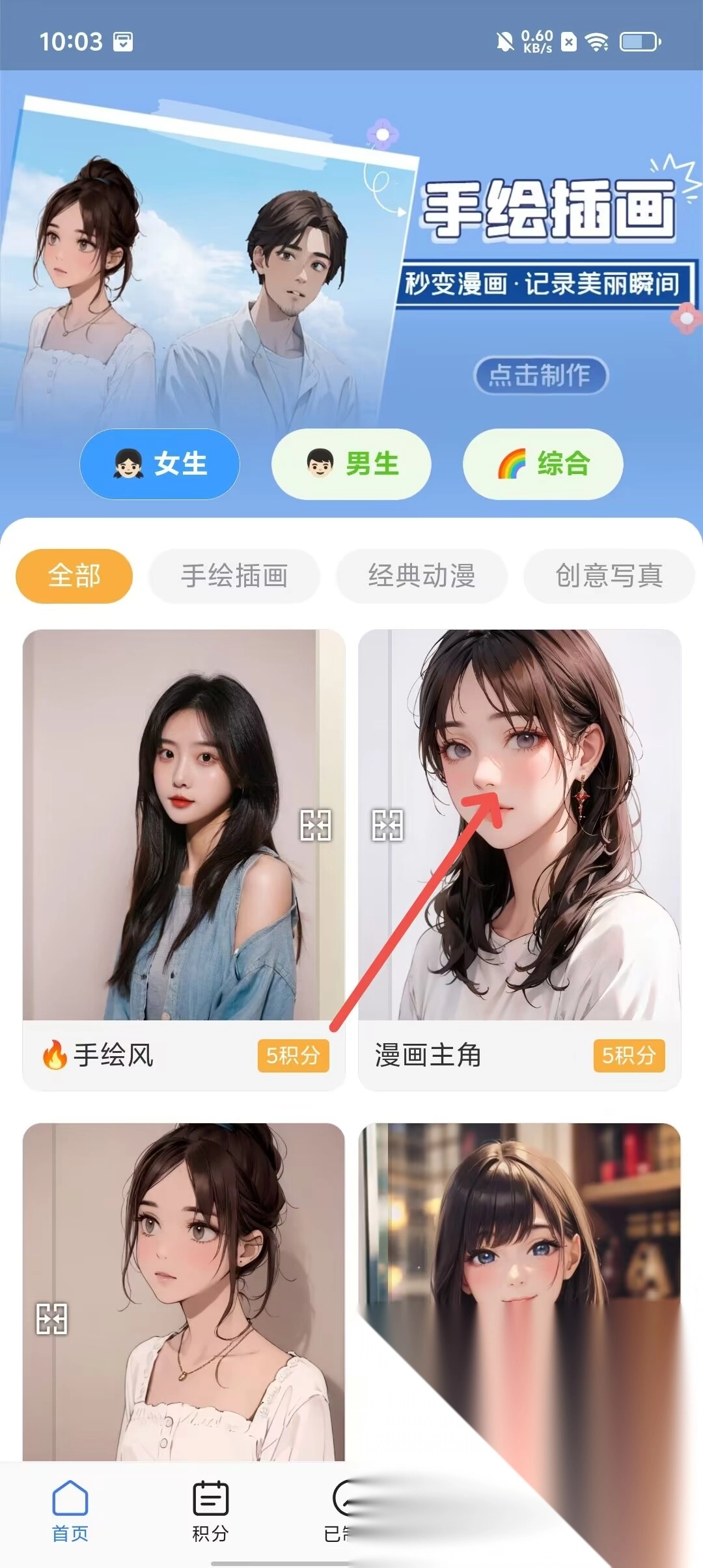 4、一键漫画,可以将喜欢的照片导入其中,系统将会智能分析适合的漫画风格快速实现动漫转换。