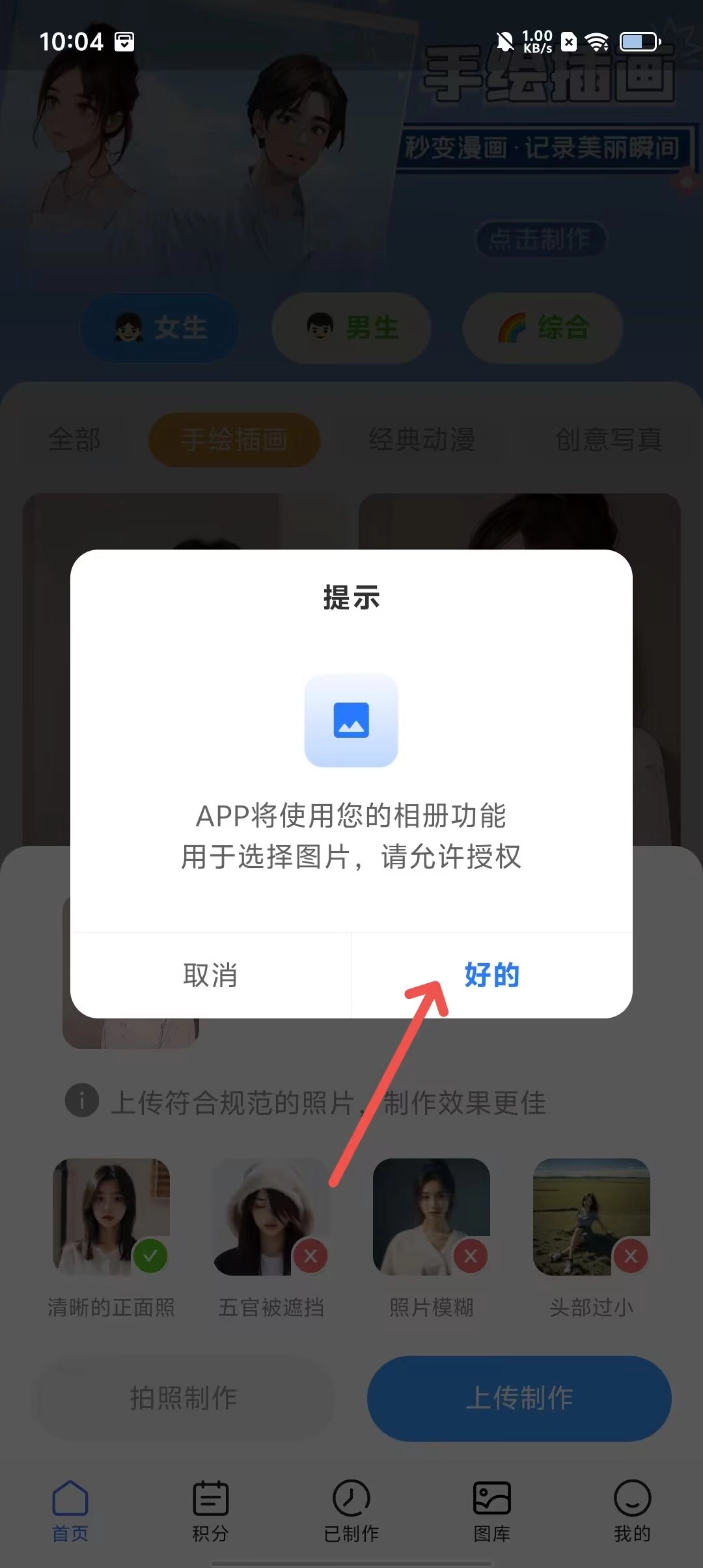 3、授权软件的相册功能即可将图片一键转换为动漫主角。