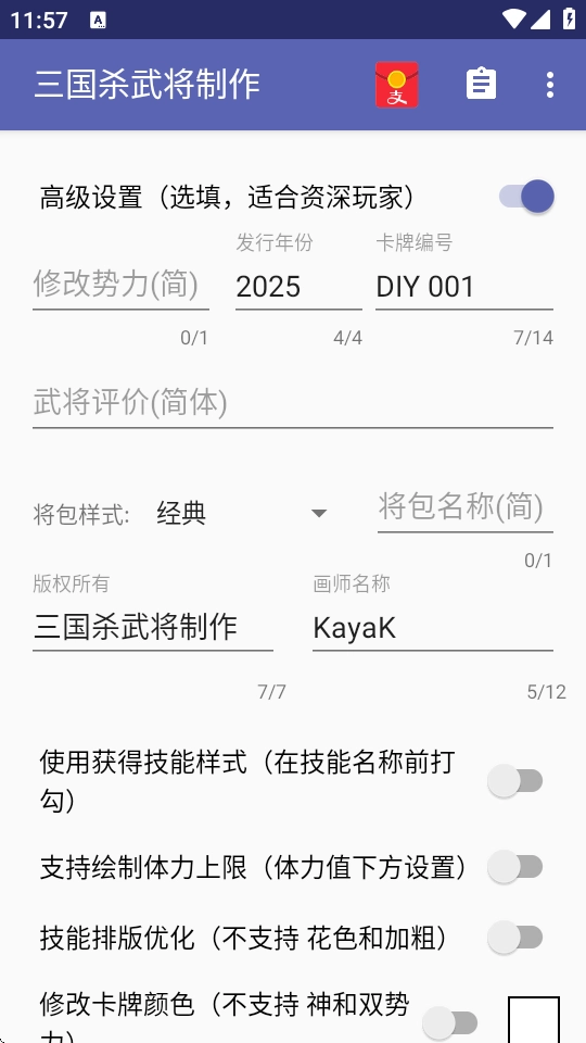 1.支持不同模式版本中的武将卡设计,让玩家可以根据自己喜好和需求进行创作。