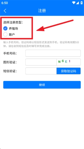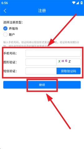 3、输入手机号码,输入图形验证码,点击“获取验证码”,输入验证码后点击继续注册成功