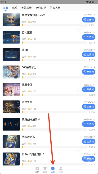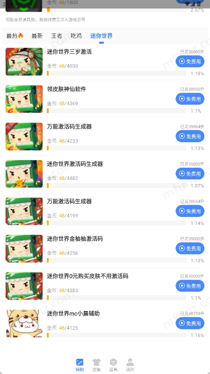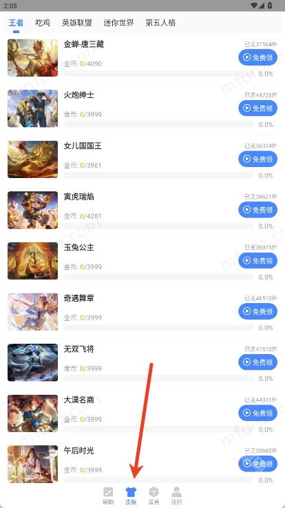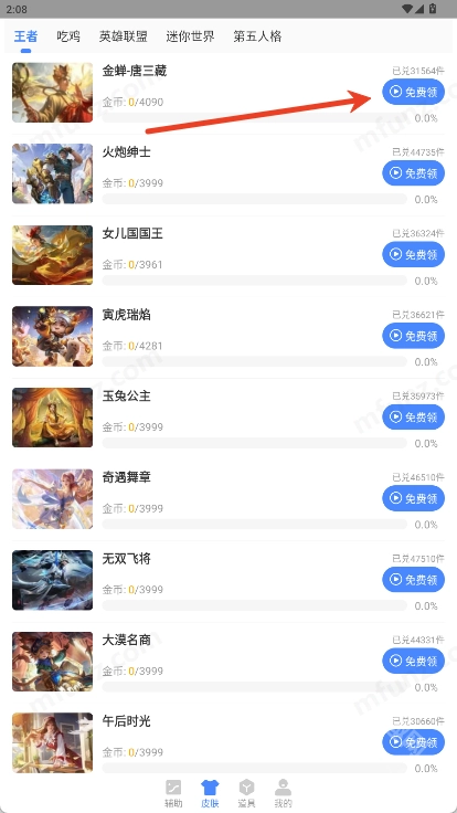 2、点击皮肤列表可浏览每款游戏的皮肤