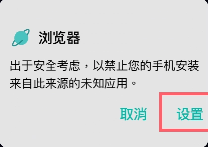 2.请打开手机设置,开启“允许来自此来源的应用”,或者关闭“禁止安装恶意应用”的选项。