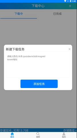 软件首页点击右上角+号,新建任务,粘贴相应的资源磁力地址,点击添加任务即可,等其完毕即可。