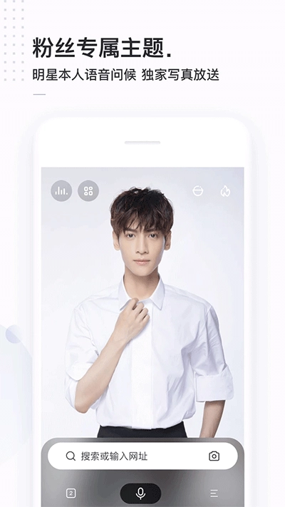 【明星主题】明星联名设计,内含明星独家高清壁纸、专属宠溺语音留言与独家呆萌表情包,让爱豆陪伴你每一次搜索。
