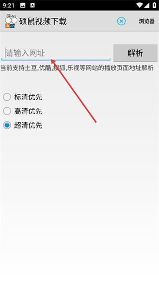 2、在网址输入页面选择视频清晰度优先级,如【超清优先】。