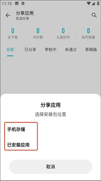 3、然后选择分享应用的位置。
