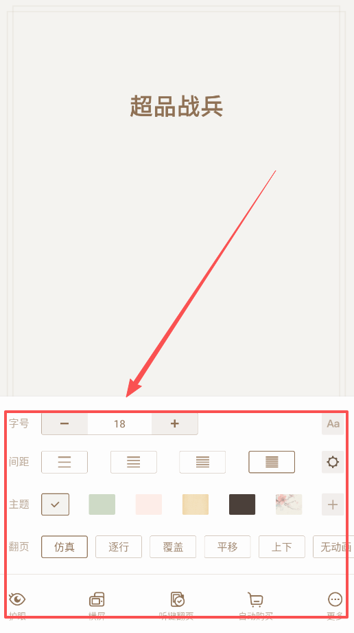阅读过程中能随时调出设置菜单,字号以18为起点支持自由调整,翻页效果则有多种动画可供选择。
