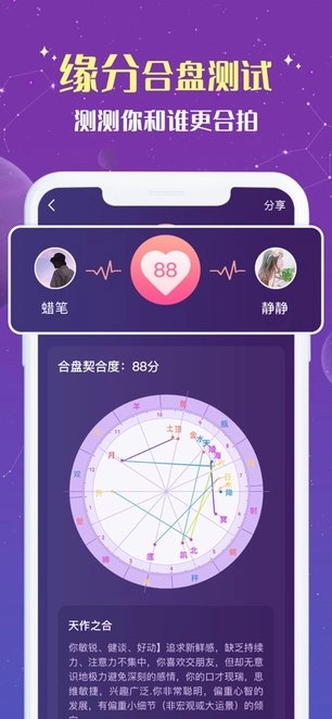 输入你和ta的生日,合参两人星盘,让你知己知彼,一秒看穿ta的心;