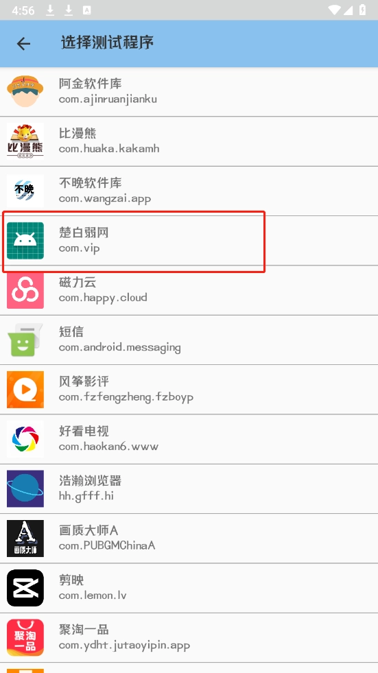 2、然后选择你需要测试的应用。