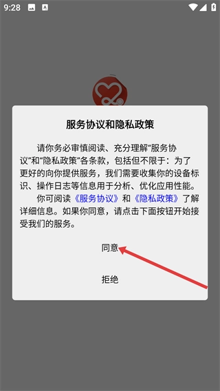 1、仔细阅读【服务协议】与【隐私政策】中的相关条款,在清楚了解设备标识、操作日志的收集用途后,点击【同意】按钮,即可继续使用本服务。