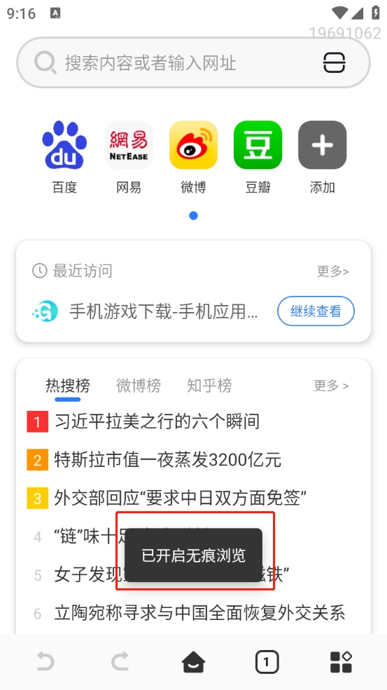 QU浏览器如何开启无痕模式