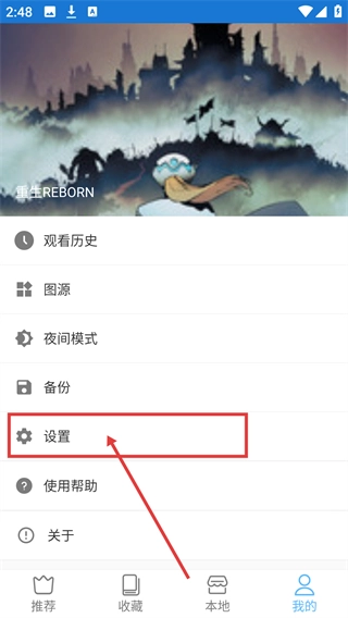 2、在个人中心找到【设置】并点击,进入设置界面,可管理阅读相关的功能选项啦。