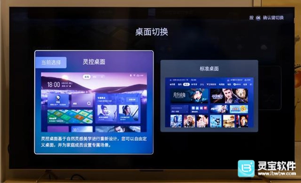 要是你用的电视机遥控器具备语音功能,那么按住遥控器上的“语音”按键,然后说“切换桌面”,就能调出切换界面。