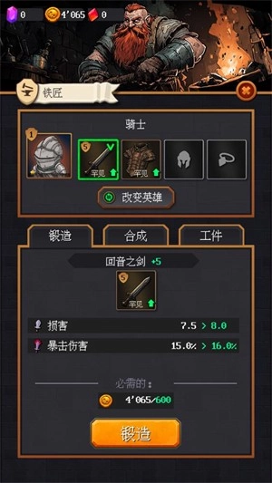 7、在主界面点击铁匠可以对英雄的装备进行强化,你可以自由选择想要强化的装备。