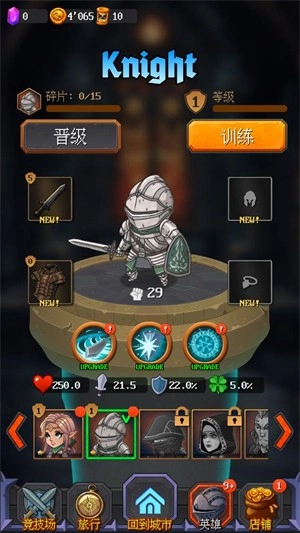 8、点击下方的英雄可以对角色进行培养,你可以提升英雄的等级或者是晋级。