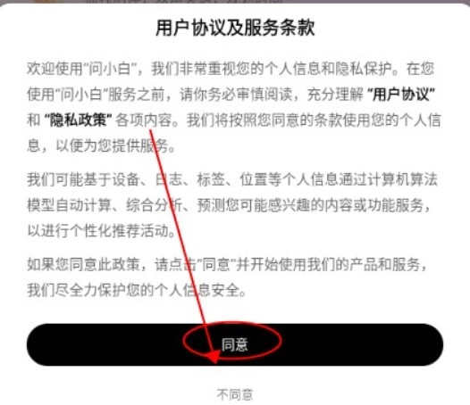 1、点击勾选同意用户协议与服务条款;