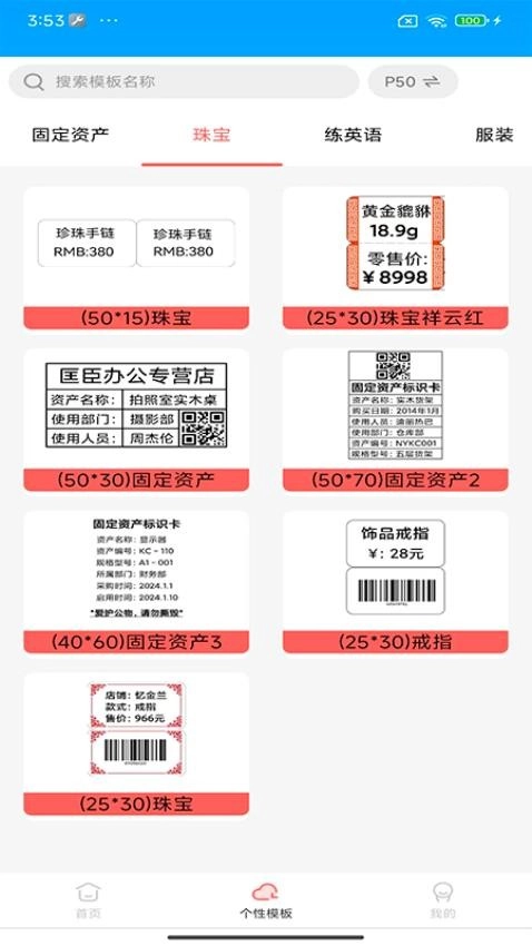 4、用户可以获取到丰富的标签模板来任意选择打印标签使用;